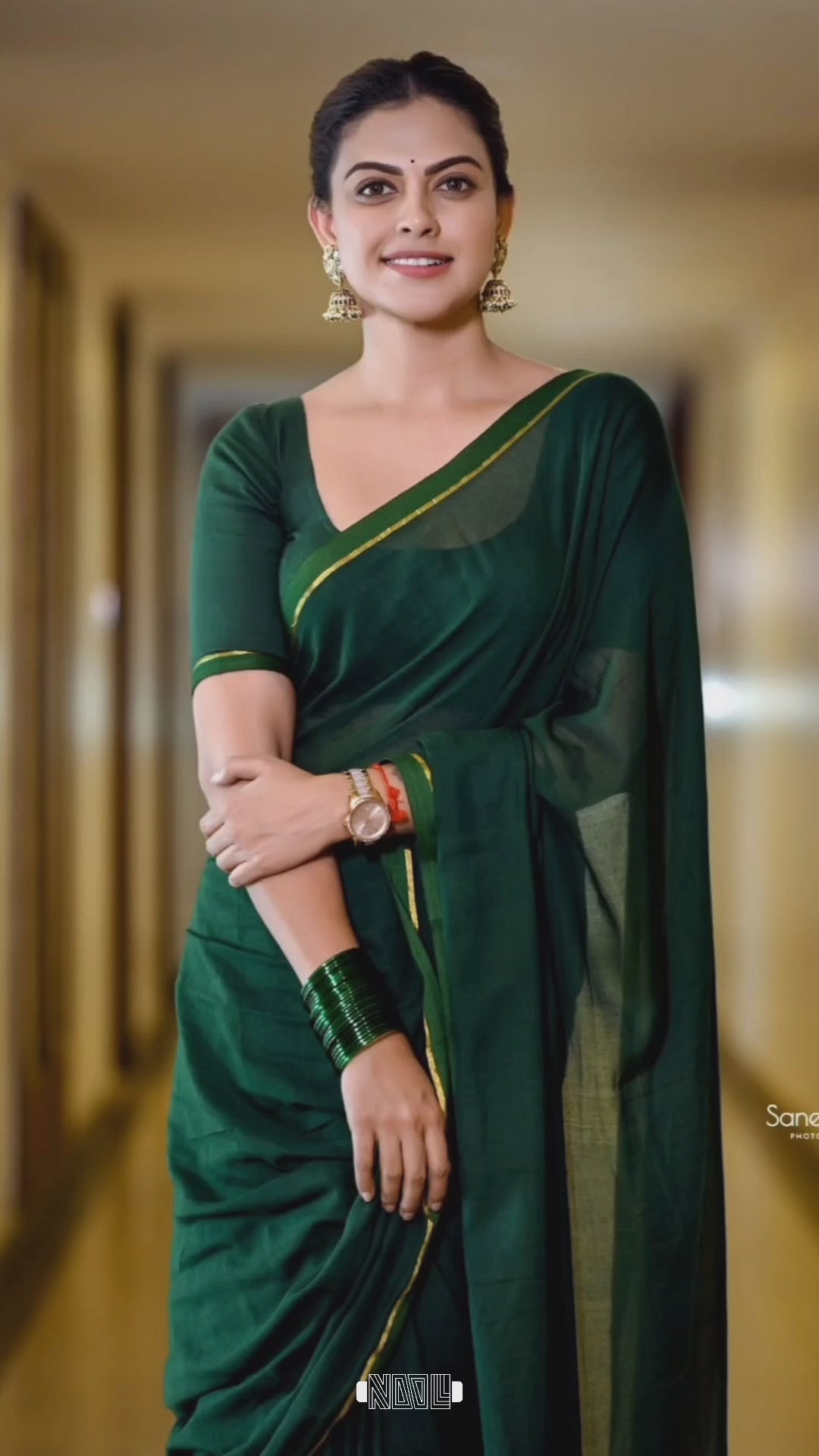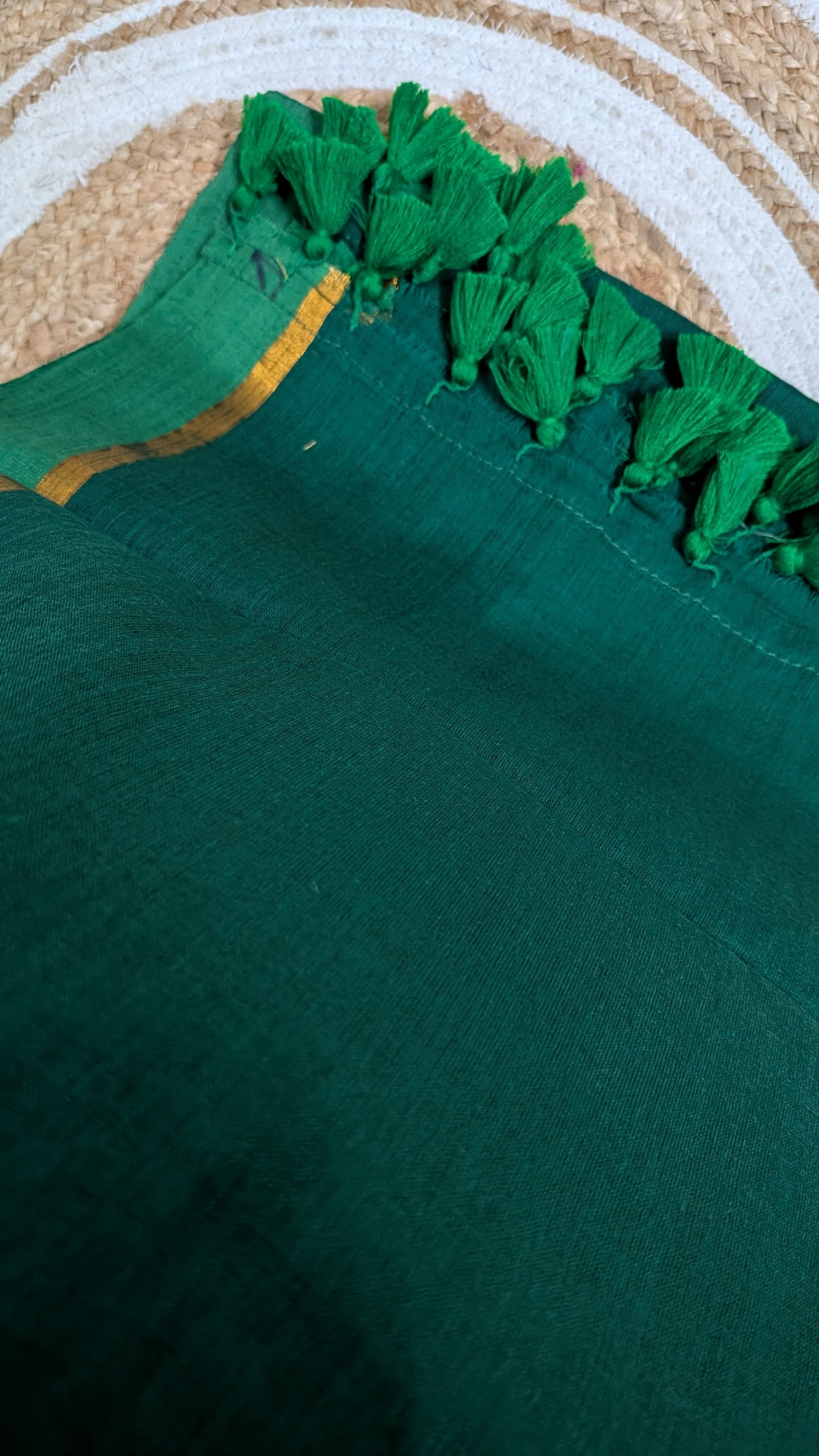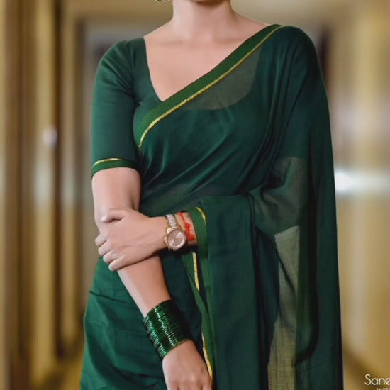 Green Mulcotton with a hint of golden border, gives an effortlesly elegent look
